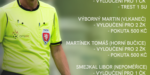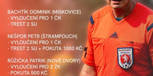 Bachtík Dominik (FK Miskovice) – Vyloučení pro 1 ČK – Trest 2 SÚ Nešpor Petr (FK AJAX ŠTRAMPOUCH) - Vyloučení pro 1 ČK – Trest 2 SÚ a pokuta ...