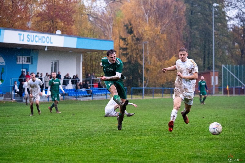 Utkání bylo doprovozeno deštivým počasím a tím pádem i složitým terénem. I přes tyto nevýhody dokázal domácí Ruben Dobeš vstřelit hattrick, jeho kolegové přidali ještě dvě branky a suchdolské béčko tak bralo výhru.